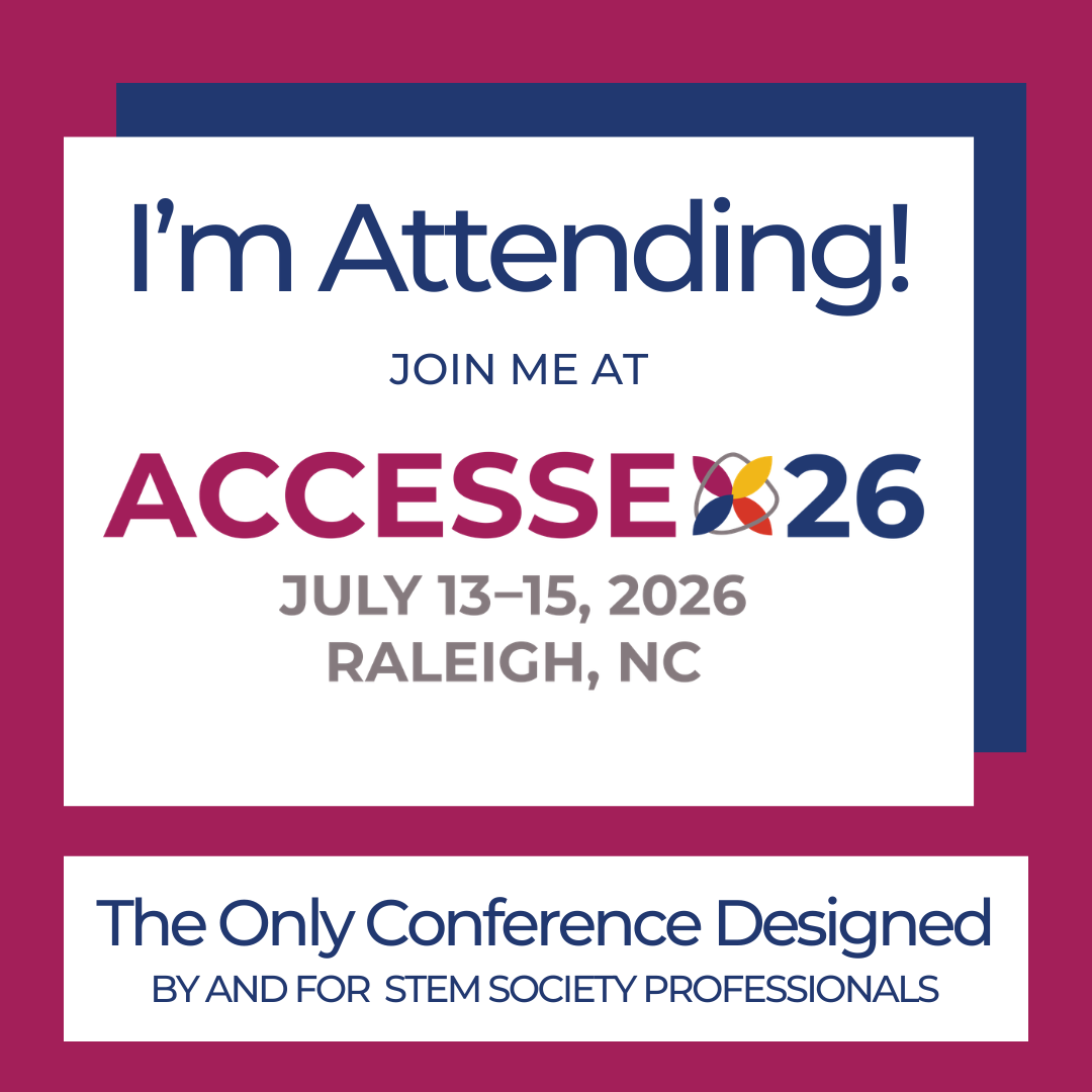 Before ACCESSE kicks off in Raleigh, make sure you stay connected for updates and exclusive opportunities. STEM societies’ staff are invited to follow us on social media: